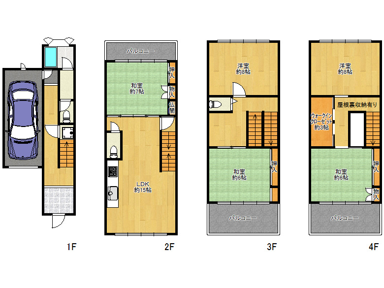 | 駐車場 | 3台 | 建物階数 | 地上4階 |