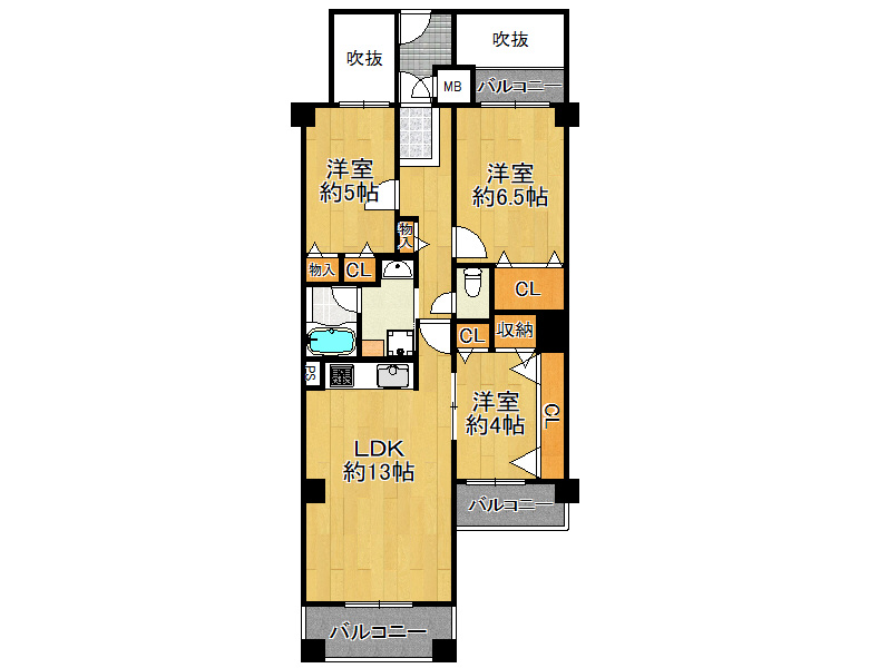 | バルコニー面積 | 13.09m² | エレベーター | あり |