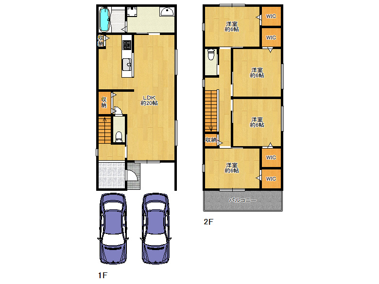 1階に水回りが集約され家事もスムーズ♪♪ お車をお持ちの方にも嬉しい駐車スペース2台! 各居室にウォークインクローゼットあり!
