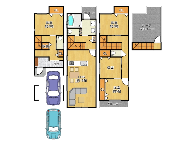 駐車場 | 2台駐車可能 | 建物階数 | |