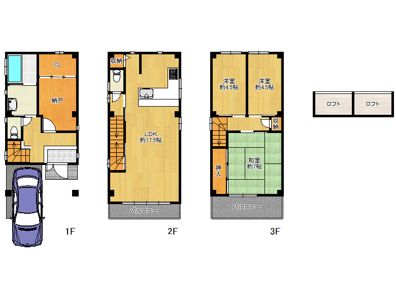 | 駐車場 | 1台 | 建物階数 | 3階建 |
