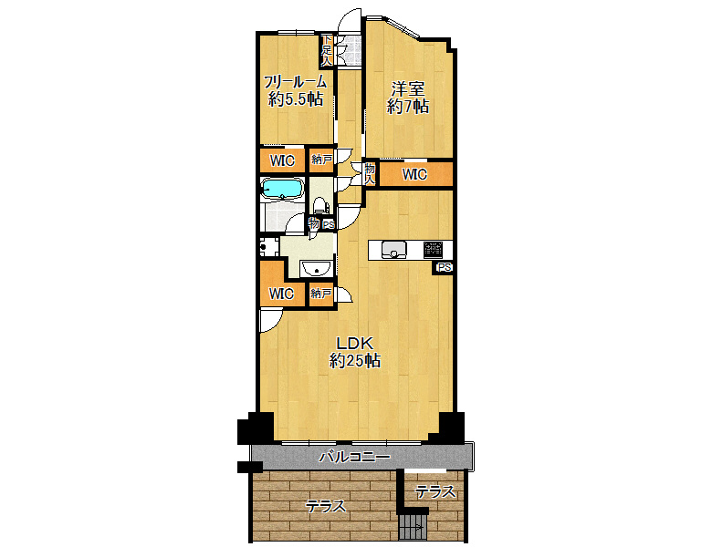 | バルコニー面積 | バルコニー5.24㎡+テラス15.43㎡ | エレベーター | 有 |