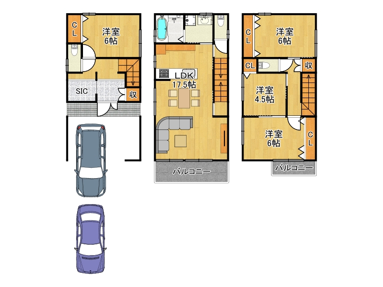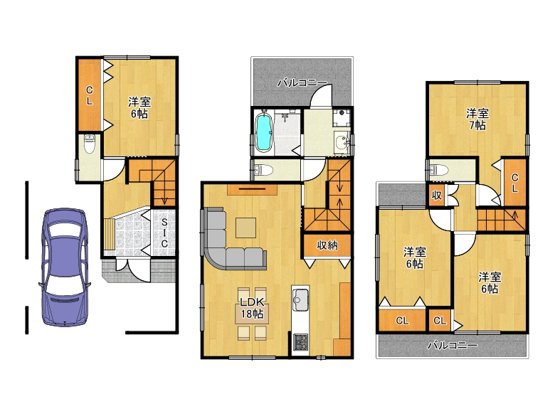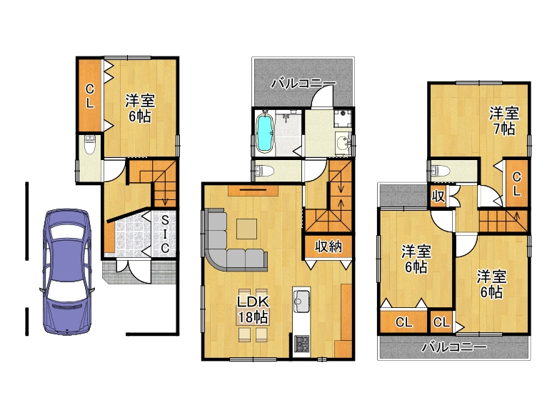 ■対面式システムキッチン ■ゆったりバスルーム ■各階にトイレ ■収納充実 ■シューズインクローゼット